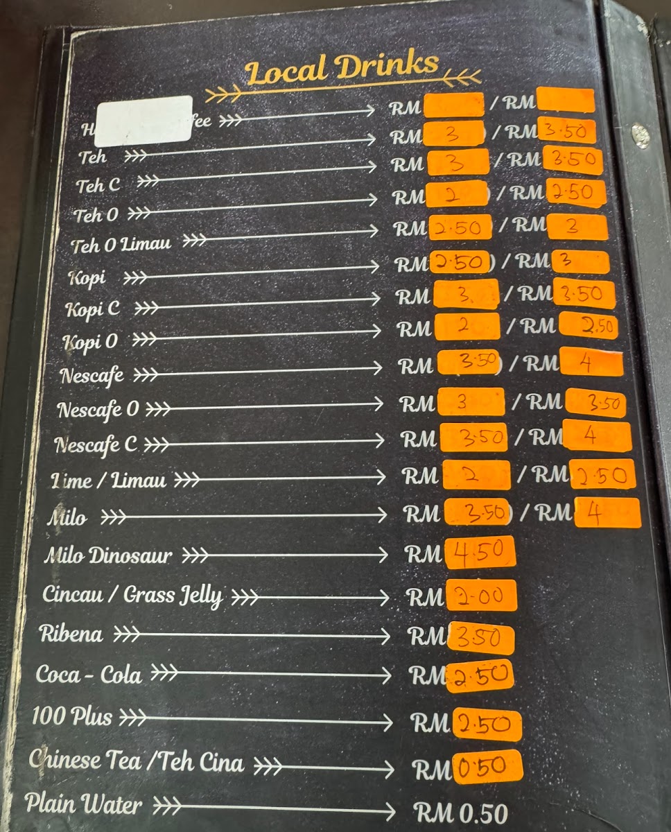 For desserts, items such as mango pudding are available, providing a sweet finish to the meal. The menu also features local flavour drinks like Asam Boi. This variety allows for casual dining suitable for lunch or dinner, catering to individuals or groups seeking balanced meal options.
